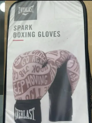 Guantes de boxeo Everlast de 12 onzas, NUEVOS SIN ESTRENAR. - Diseño con texto estampado. - Cierre de velcro ajustable. - Marca Everlast visible en la muñeca. Vendo por error de talla. PRECIO NEGOCIABLE