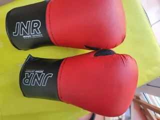 Guantes de boxeo infantiles marca JNR. - Talla 6 oz. - Color rojo y negro. - Cierre de velcro. - Material exterior PU. - Malla transpirable en la palma.