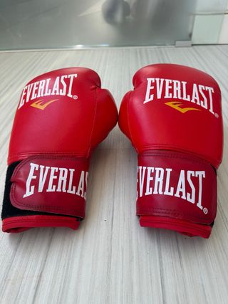 Vendo guantes de boxeo Everlast rojos, completamente nuevos, sin uso. Se compraron nuevos y nunca se han estrenado. ✔ 12 oz ✔ Piel sintética resistente y duradera ✔ Núcleo de espuma de dos capas para absorber los golpes ✔ Cierre de velcro ancho y elástico para un ajuste seguro ✔ Revestimiento antimicrobiano para mayor higiene y durabilidad ✔ Pulgar próximo para reducir el riesgo de lesiones 🎁 Regalo unas vendas para boxeo con la compra 🎁 Precio NO negociable. Entrega en mano o envío a cargo del comprador.