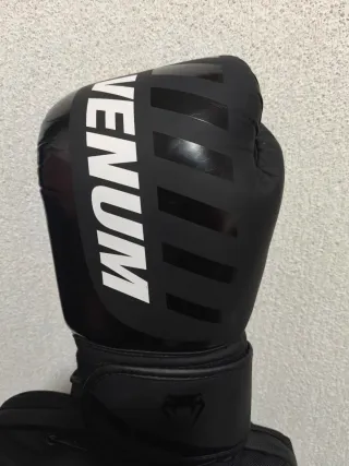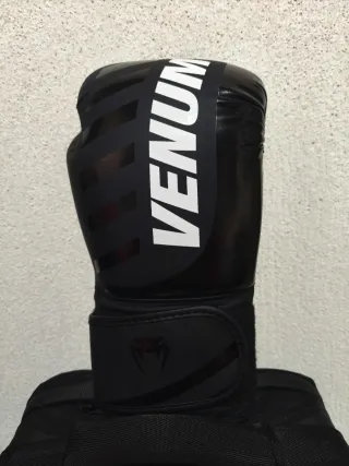 Guantes de boxeo Venum Challenger, totalmente nuevos. - Diseño en color negro. - Cierre de velcro. - Logo de Venum en la muñeca y en el guante.