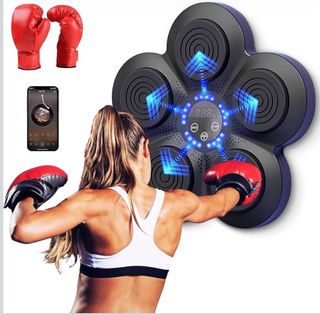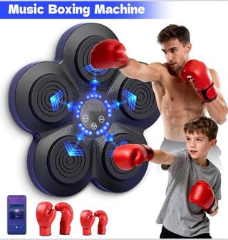 Máquina de boxeo musical para entrenamiento. - Diseño compacto y portátil. - Superficie de golpeo acolchada. - Con bluetooth - Trae un par de guantes de boxeo nuevos - Está en su caja