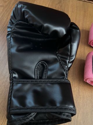 Guantes Boxeo Negros y Vendas Rosas nuevas.