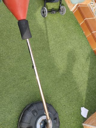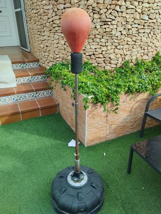Punch saco boxeo y guantes de cuero. Punch 30€, está en buen estado. El deterioro que tiene es por estar en el patio. Los guantes por 30€. Están prácticamente nuevos. Poco uso. Precio venta conjunto 50€. Dejé de usarlo por rotura de tendón en mano.