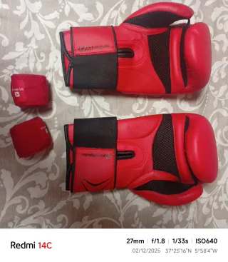 Guantes Boxeo Rojos y Vendas