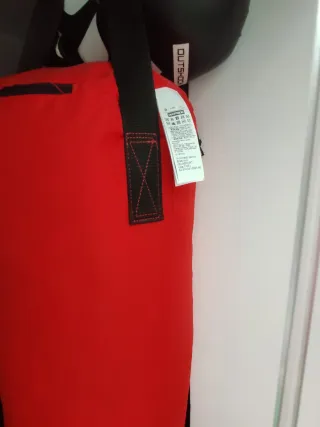Saco de boxeo y guantes rojos decathlon