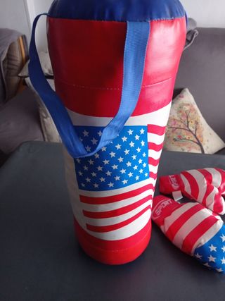 U.S.A.Saco de boxeo y guantes para niños.