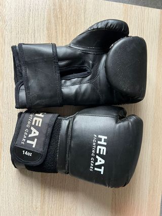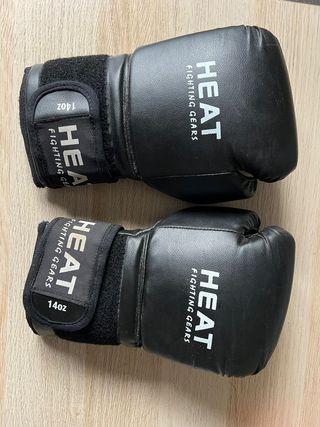 Par de guantes de boxeo de la marca HEAT. - Color negro. - Cierre de velcro. - Peso de 14 onzas. Estan tal y como ves en las fotos. Regalo vendas.