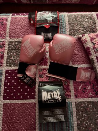Guantes de boxeo METAL BOXE en color rosa, diseñados para iniciación. - Fabricados en PU Poliuretano. - Cierre de velcro en la muñeca. - Ideales para entrenamiento y golpes ligeros.