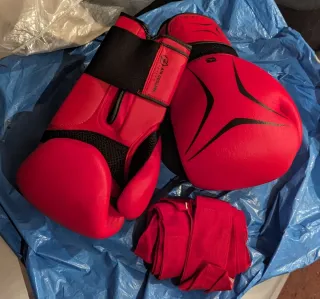 Guantes de boxeo rojos 12 onzas y vendas de 3 metros, sin usar ni guantes ni vendas y en muy buen estado precio negociable.