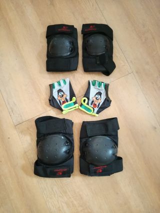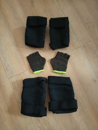 Set de protecciones para patinaje o ciclismo. - Talla L - Incluye coderas, rodilleras y guantes. - Diseño ergonómico para mayor comodidad. - Cierres ajustables para un ajuste seguro.