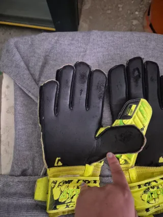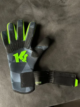 Guantes de portero KEEPERsport línea Athletic en color grafito y negro, seminuevos y con muy poco uso. Talla 13/14, ideales para portero adulto con manos grandes. La palma presenta un ligero desgaste propio del uso, pero no tiene ningún agujero. El velcro y la zona de ajuste se encuentran en perfecto estado. En general, están muy bien cuidados y listos para seguir utilizándose sin problema.