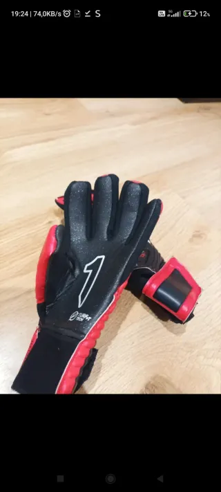 Guantes de portero Rinat en color rojo y negro, talla 4. Diseñados para ofrecer protección y agarre. - Color: Rojo y negro. - Talla: 4. - Marca: Rinat. Sin Uso