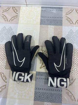 Guantes de portero Nike para niño, modelo Jr. Match. - Color negro con detalles blancos. - Cierre de velcro en la muñeca. - Diseño con el logo de Nike.