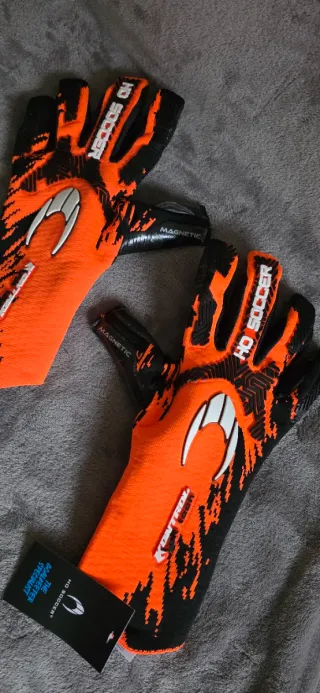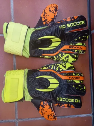 Guantes de portero HO SOCCER en color naranja y negro. - Diseño con detalles gráficos. - Materiales de alta calidad.