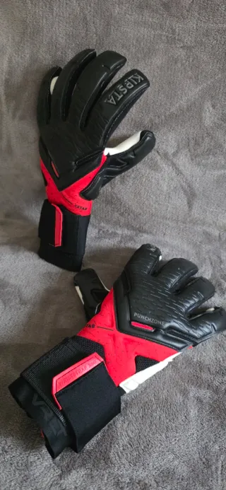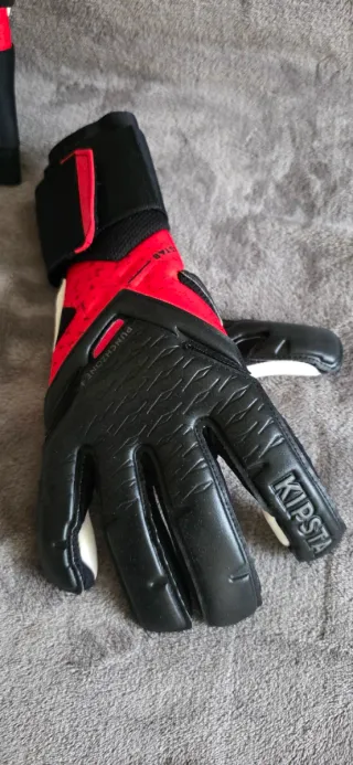 Guantes de portero Kipsta F900 en color negro y rojo. Diseñados para ofrecer un buen agarre y protección. Talla 8'5. - Marca: Kipsta - Modelo: F900 - Color: Negro y rojo - Cierre de velcro en la muñeca
