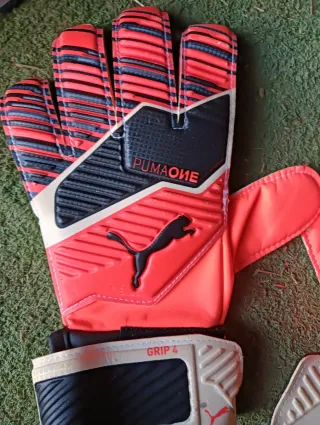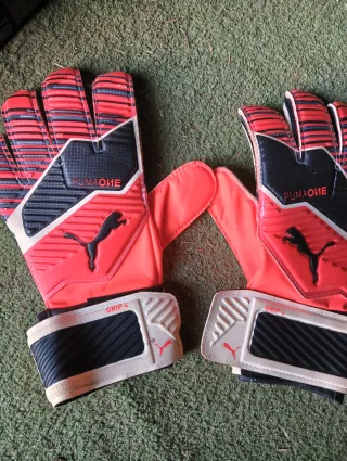 Guantes de portero PUMA ONE GRIP 4 en color rojo y negro. - Diseño con detalles en blanco. - Logo de PUMA en la palma. - Cierre de velcro en la muñeca.