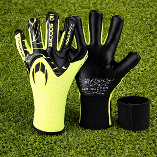 Guantes profesionales de fútbol para portero en negro con amarillo neón, diseño moderno y alto rendimiento. Ideales para entrenamientos intensivos y partidos. ✔ Palma de látex UCG 3 mm + 3 mm de foam, gran agarre y buena absorción del impacto. ✔ Corte ergonómico Adhesion Cut con pulgar envuelto en látex para mayor control del balón. ✔ Dorso transpirable de malla ligera que mejora la ventilación. ✔ Sobredorso con espuma sintética de 4 mm para mayor comodidad y protección. ✔ Muñequera elástica con cierre ajustable. ⚠️ Modelo que talla justo. Pide + 1 talla #GuantesPortero #HOSoccer #GuantesFutbol #GoalkeeperGloves #MaterialFutbo