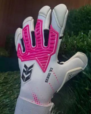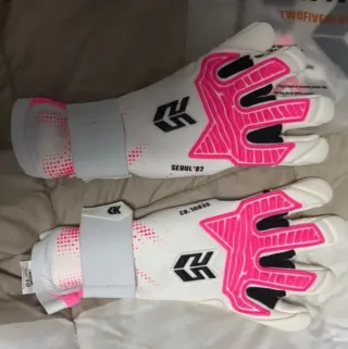 Guantes de portero TwoFive en color blanco y rosa. Talla 11 - Diseño moderno con detalles en rosa. - Cierre de velcro ajustable. - Logo de la marca en negro.