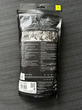 Guantes de portero de la marca Adidas en talla 9. Diseñados para ofrecer protección y agarre. - Color negro y blanco. - Logo de Adidas en la parte frontal. - Cierre de velcro en la muñeca.