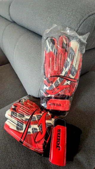 Guantes de portero Joma a estrenar, con un diseño llamativo en rojo, blanco y azul. - Diseño a cuadros. - Cierre de velcro. - 100% nuevos