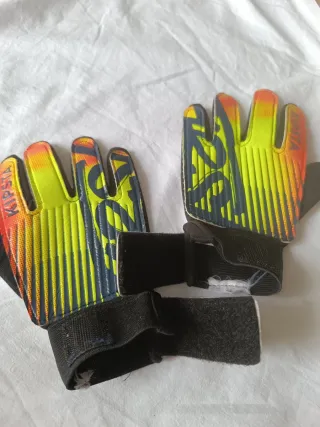 Guantes de portero para niño de la marca Kipsta. - Diseño llamativo con degradado de colores. - Cierre de velcro ajustable. Apenas usado, perfecto estado.