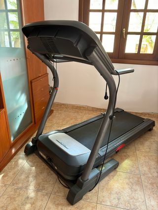 Cinta de correr con sistema de amortiguación. - Diseño moderno y funcional. - Superficie de carrera amplia. - Consola con pantalla. Se vende cinta de correr con muy poco uso. Con distintas velocidades e inclinaciones. App para programar con el móvil. Plegable y fácil de guardar con ruedas en la base para moverla con facilidad. Precio negociable.