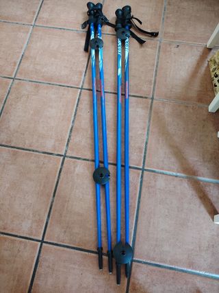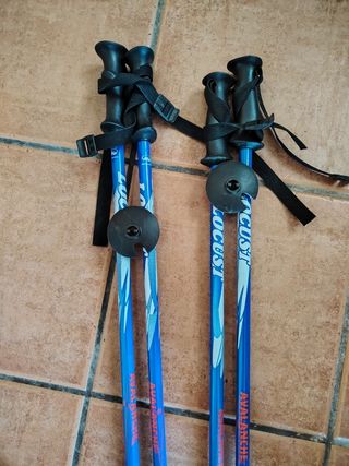 Se venden dos bastones de trekking de la marca Avalanche. Son de color azul y parecen estar en buen estado. - Marca: Avalanche - Modelo: Avalanche - Material: Aluminio (se presume) - Color: Azul - Cantidad: 2