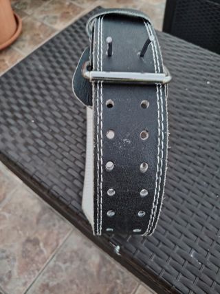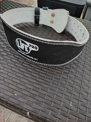 Cinturón de levantamiento de pesas de la marca Life Pro. Está en buen estado, con señales normales de uso. - Marca: Life Pro - Material: Cuero - Color: Negro con pespuntes blancos - Ideal para entrenamiento de fuerza