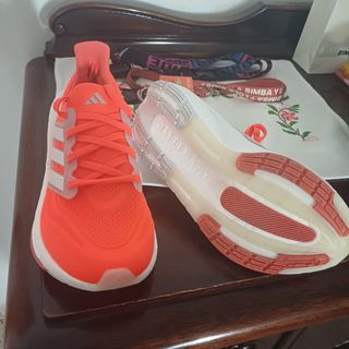 Zapatillas deportivas Adidas de color naranja brillante con detalles blancos. - Diseño moderno y deportivo. - Suela blanca. - Tres franjas blancas laterales características de la marca. Número 40