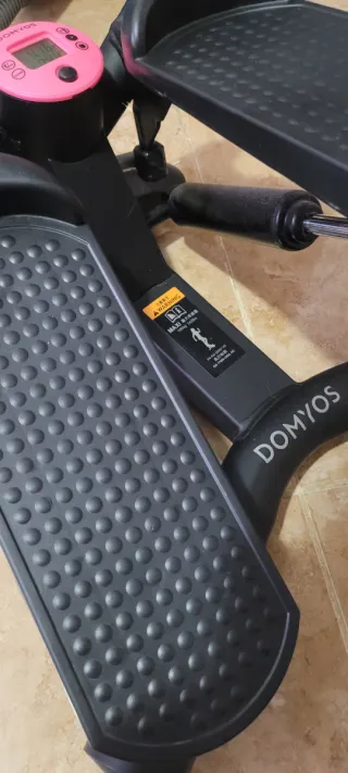 Mini stepper de la marca Domyos, ideal para ejercitarse en casa. Cuenta con una pantalla digital para seguir tu progreso. - Pantalla digital. - Diseño compacto y fácil de almacenar.