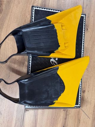Aletas Deluxe Fins prácticamente sin usar. se venden con su caja original. Flotan en el agua. - Talla: L 45-46,5 - Color: Amarillo y Negro