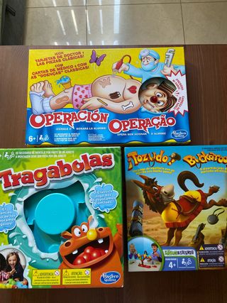 Se venden tres juegos de mesa clásicos. - Operación (Operação) - Tragabolas (Hipopótamos Comilones) - Tozudo! Buckaroo - Incluyen todas las piezas y manuales según se ve en las imágenes.