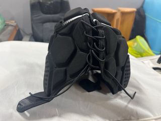 Protector de cabeza de la marca Canterbury, diseñado por Decathlon. Ideal para deportes de contacto. - Color negro. - Cierre con cordones. - Acolchado para mayor protección.