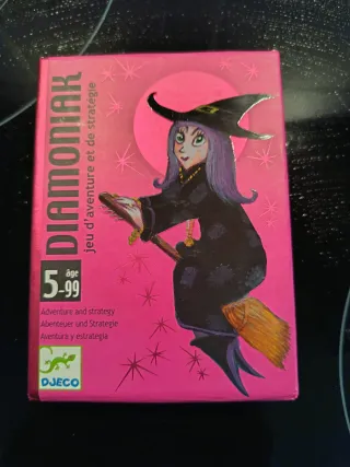 Juego de cartas Diamoniak de la marca Djeco. Ideal para desarrollar la aventura y la estrategia. - Edad recomendada: 5-99 años. - Idiomas: Español, Inglés, Alemán, Francés. - Incluye instrucciones. -cartas, puzle, velocidad, estrategia - tenemos varios de la misma casa: FAMILOU y MAGIC SCHOOL. PRECIO UNIDAD 7 € PRECIO POR LOS TRES 15€