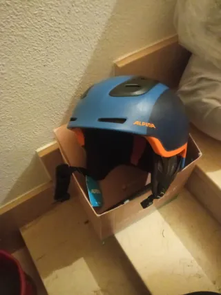Casco de esquí Alpina en color azul con detalles naranjas. Incluye enganche para GoPro. - Color: Azul y naranja. - Marca: Alpina. - Cierre de seguridad. - Diseño ventilado. TALLA 55 59