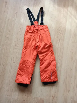 USADO UNA VEZ . Pantalón de esquí para niño o niña en color naranja. Ideal para disfrutar de la nieve con comodidad. Marca lupilu. - Tirantes ajustables. - Refuerzos en la zona de las rodillas y bajo. - Bolsillos frontales.