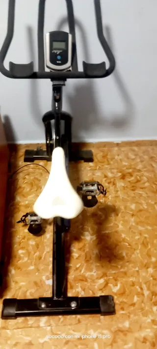Bicicleta estática para ejercicio en casa. - Diseño robusto y estable. - Pantalla no funcciona - Pedales con agarre. - Manillar ajustable.