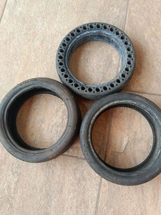 Tres ruedas usadas para patinete eléctrico Xiaomi M365. Están en buen estado, con señales normales de uso. - Ideales para reemplazar las ruedas desgastadas. - Se venden las tres juntas. - Perfecto estado general.