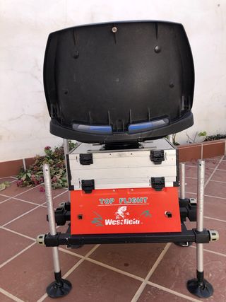 Vendo silla giratoria para pesca Flagman en buen estado. Es perfecta para largas jornadas de pesca. - Incluye reposapiés. - Estructura robusta y estable. - Asiento giratorio cómodo y acolchado.