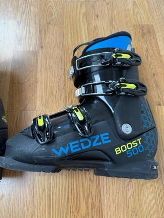 Botas de esquí para niños en color negro. Cuentan con cierres de hebilla para un ajuste seguro. Son talla 24, que viene a ser una 38. - Cierres de hebilla metálica. - Interior acolchado para mayor comodidad. - Diseño robusto.