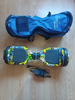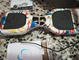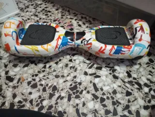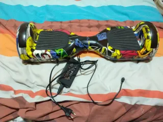 Hoverboard con un diseño llamativo y colorido, perfecto para desplazarse. - Incluye bolsa de transporte azul. - Viene con su cargador original. -Solo tiene unos pequeños arañazos en la parte de arriba, pero funciona perfectamente.