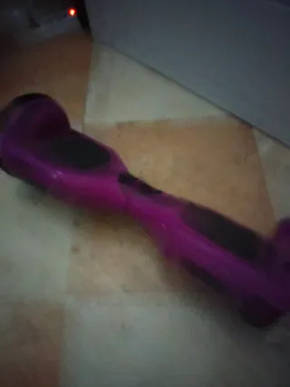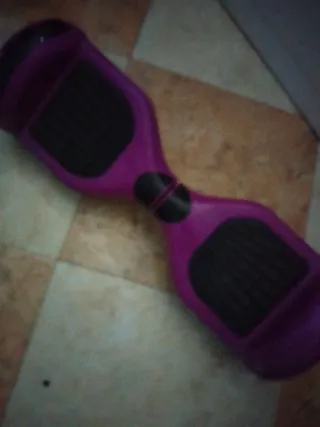 Hoverboard de color morado con plataformas negras. - Diseño moderno y llamativo. - Ideal para desplazamientos urbanos. A falta de cargador Funciona perfectamente Se entrega tal como está no se aceptan devoluciones