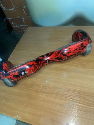 Hoverboard de color rojo, perfecto para desplazarse de forma divertida. Incluye su cargador. - Diseño moderno y llamativo. - Plataformas antideslizantes para mayor seguridad. - No se porque cuando lo enciendo pita pero no tiene ningun golpe ni nada