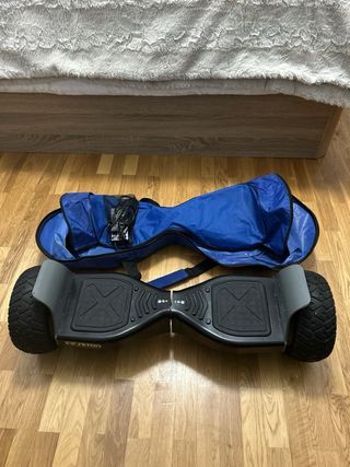 Hoverboard Gyroor G13 en color negro. Apto para niños desde 25 hasta 80 Kgs. - Luces LED frontales y en ruedas. - Autobalanceado. - Cargador y caja original con embalaje incluidos. - Manual descargable por internet. Fue un regalo de reyes para mi hija pero al no vivir en núcleo urbano casi ni lo ha usado. El primer día dentro de casa y dos días más en la calle, en terreno liso y sin ningún golpe. Está casi sin uso y con dos cargas de batería tan solo, pero bien realizadas. Patinete guardado en su caja siempre y bien limpio y cuidado. Verás por las ruedas que está perfecto. Merece la pena verlo in situ. Negociable razonablemente.