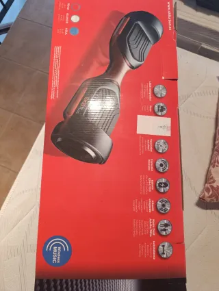 Hoverboard eléctrico sin estrenar, con conexión Bluetooth para escuchar música. Cuenta con luces LED integradas para mayor diversión y visibilidad. - Certificado UL2272. - Plataforma antideslizante. - Ruedas de 6.5. - Asa de transporte integrada. - Velocidad máxima: 15 km/h. - Autonomía: hasta 20 km.