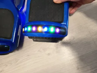 Hoverboard eléctrico auto-equilibrado de 2 ruedas, color azul, totalmente funcional. ✅ Funciona y carga correctamente 🔊 Bluetooth operativo (altavoces OK) 💡 LEDs funcionando 🔌 Incluye cargador original Tiene rozones y marcas de uso normales del tiempo (se ven en las fotos). A nivel interno funciona bien; como cualquier hoverboard con uso, la batería puede tener algo de desgaste, pero personalmente no supone un problema para su funcionamiento normal. Ideal para uso ocasional, para alguien que quiera un hoverboard barato o para PIEZAS. 📸 Puedo enviar más fotos o vídeo funcionando sin problema. 💬 Precio negociable