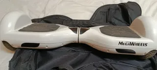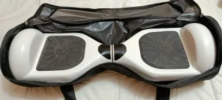 Hoverboard de color blanco, ideal para desplazarse de forma divertida. Se incluye una funda para su transporte. - Diseño moderno y elegante. - Superficie antideslizante para mayor seguridad. - Con luces LED. Conexión inalámbrica para poder escuchar música mientras te diviértetes. Muy poco uso y bien tratado, ningún golpe, se puede comprobar
