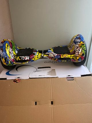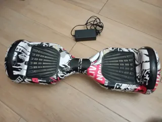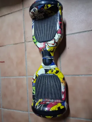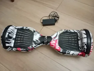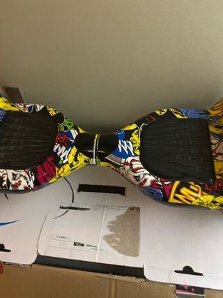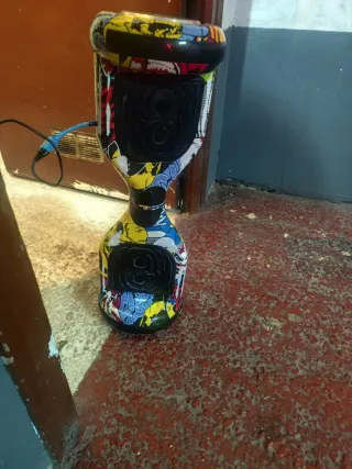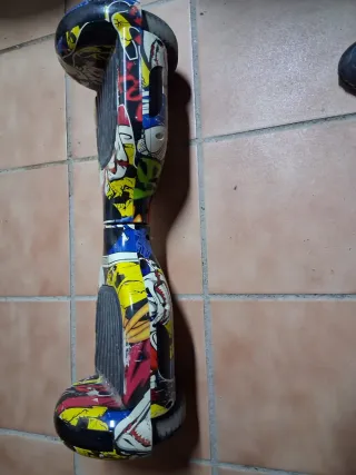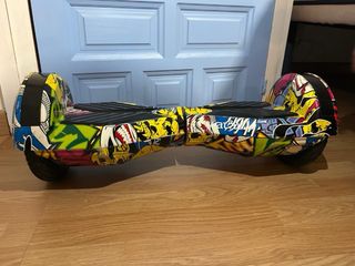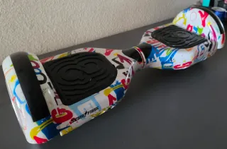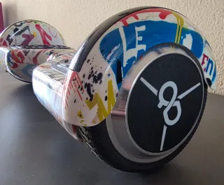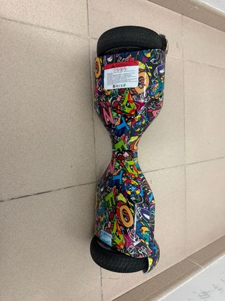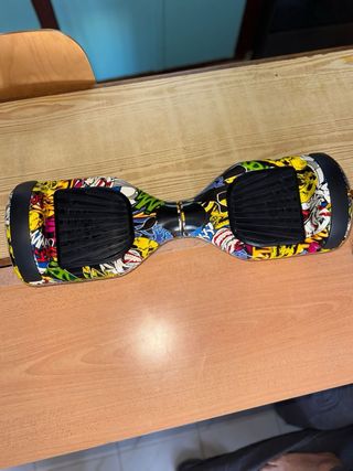 Hoverboard con un llamativo diseño de graffiti. - Ruedas con luces. - Manillar ajustable. - Base antideslizante. - Un poco rozado por la parte de abajo por el uso