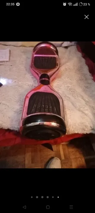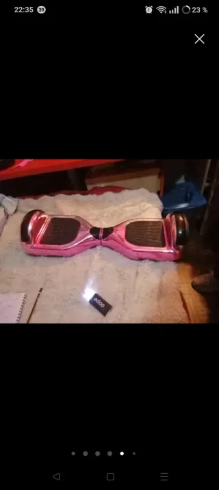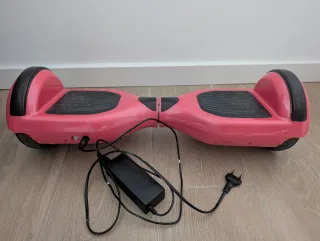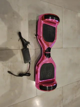 Hoverboard eléctrico con un llamativo acabado rosa metálico. Perfecto para desplazarse de forma divertida. - Diseño moderno y brillante. - Plataformas antideslizantes.con bluetooth luces incorporadas velocidad 15kh,10 de autonomía en perfecto estado lo dejo tan barato porque no tiene cargador se rompió pero no cuesta ni 15euros ,lo vendo por que mi hija lo compró lo uso 5 veces y ya no lo quiere le da miedo, interesados poneros en contacto con migo se puede negociar.