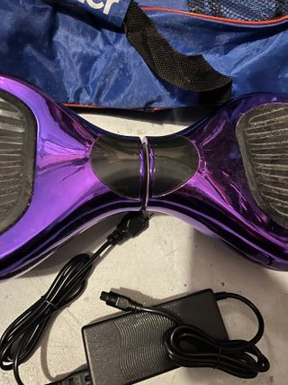 Vendo Hoverboard de la marca iScooter en color púrpura metalizado/cromado. Está en muy buen estado estético, con muy poco uso pero la bateria de estar parada no dura y se tendria q cambiar. Incluye: Hoverboard con luces LED. Cargador original. Funda de transporte oficial iScooter con asas.